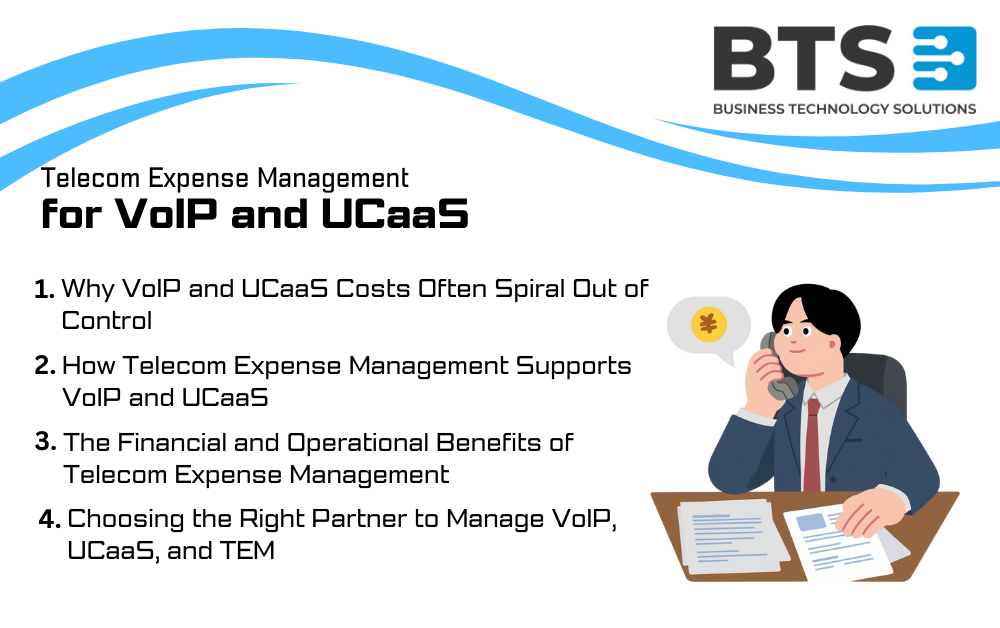 Managing VoIP and UCaaS costs requires more than reviewing invoices or cutting services. It requires ongoing visibility, coordination, and a clear understanding of how communication tools are actually being used. Telecom expense management provides the structure businesses need to control costs, reduce waste, and plan confidently as communication needs evolve. If your business is looking to gain better control over VoIP and UCaaS spending, contact BTS Solutions to learn how telecom expense management can improve visibility, support smarter decisions, and reduce unnecessary costs.